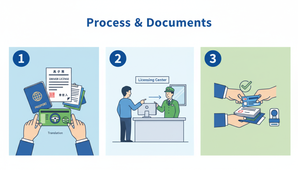 滞在実績: 免許取得後、その国に通算3ヶ月以上滞在していた事実が必要です。「切り替え目的の短期取得」は認められません。